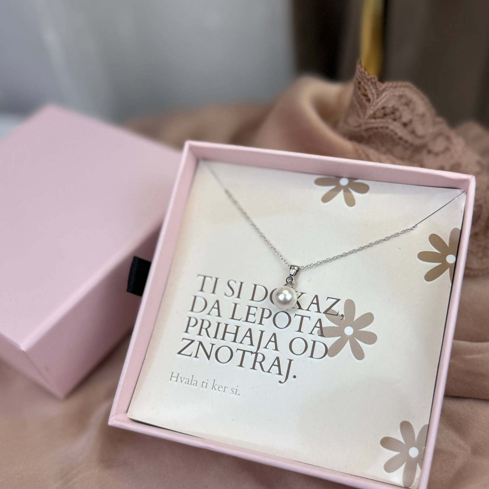 - Eleganten obesek v obliki bisera za klasično in prefinjeno žensko.